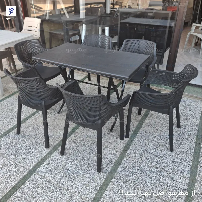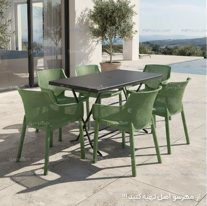 میز و صندلی 6 نفره هرکول با میز تاشو (جنس پلاستیکی پلیمری)