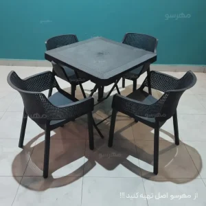 ست میز صندلی پلاستیکی عصرانه با طراحی حصیری و خاتم مناسب برای فضا های باز و داخلی در معرض شرایط مختلف آب و هوایی با مقاومت بالا در برابر اشعه خورشید.